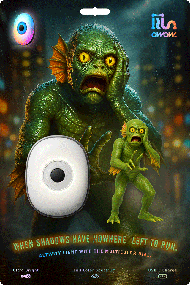 Our distinctive packaging transforms this safety light into a coveted seasonal gift while reinforcing our monster-themed campaign. The Halloween-timed design features our startled creatures confronted by light, creating immediate brand recognition and playful shelf appeal. This limited-edition packaging elevates the product from practical safety device to memorable gift item, perfect for Halloween season when darkness and light safety become particularly relevant. The packaging itself becomes part of the product experience, extending our campaign message through the unboxing journey.